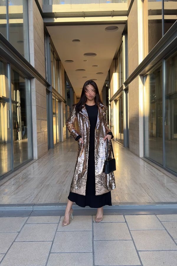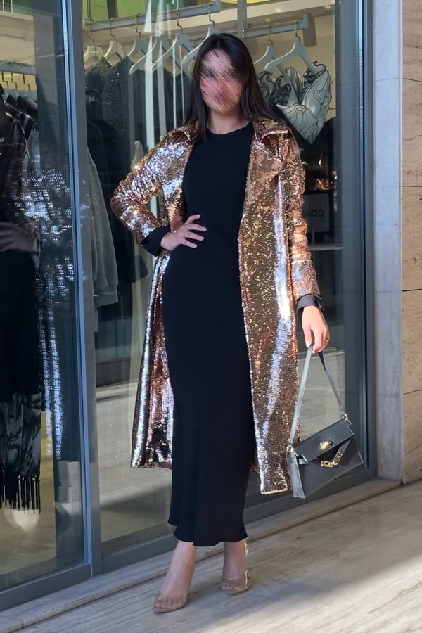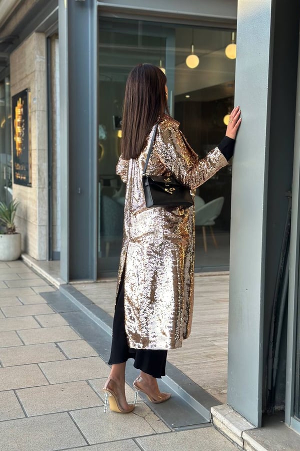 Rose gold sequined long coat